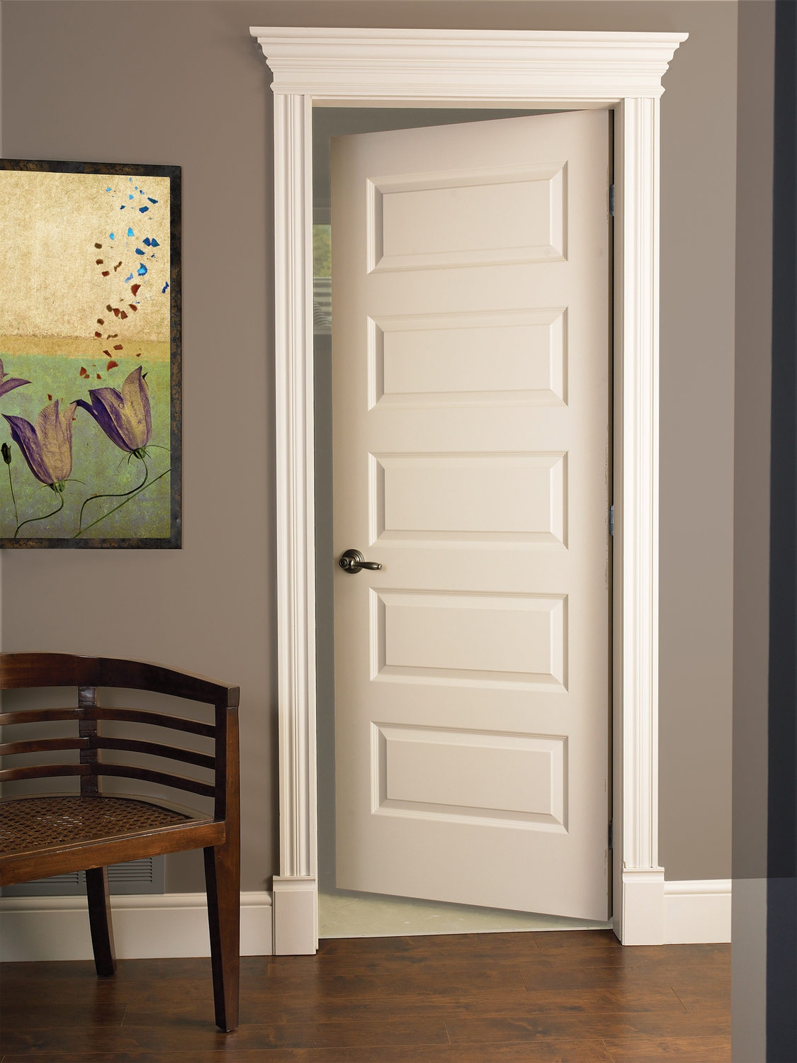 Door with moulded panels and smooth, pre-painted surface. Choice of solid or hollow core. Folding version and non-standard heights also available.