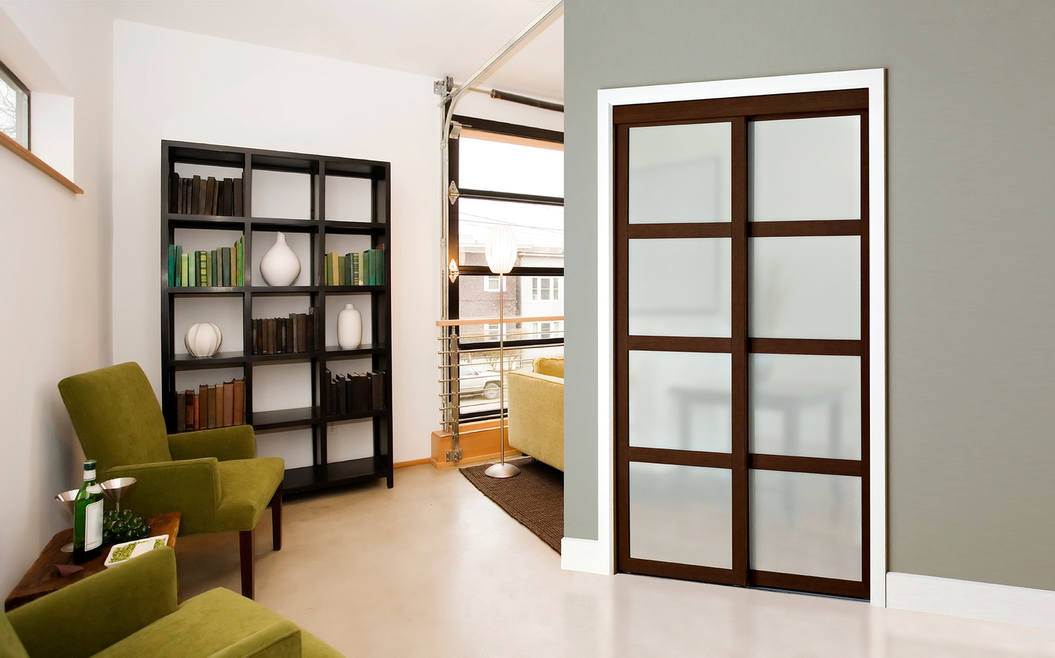 Modèle avec cadre de 2 1/2 po et moulures horizontales. Insertions de verres ou de panneaux fini bois, au choix. Offert en 2 hauteurs.